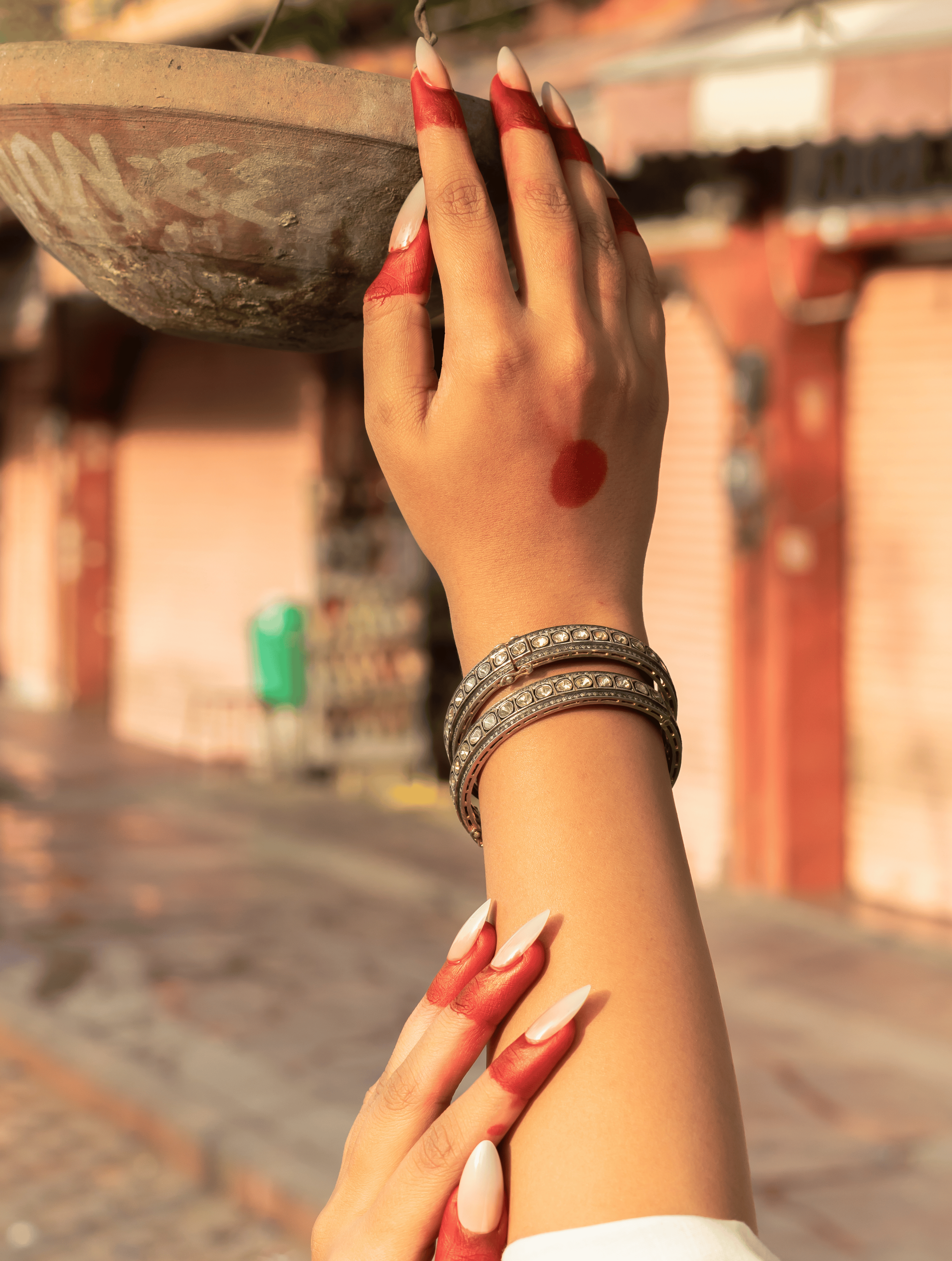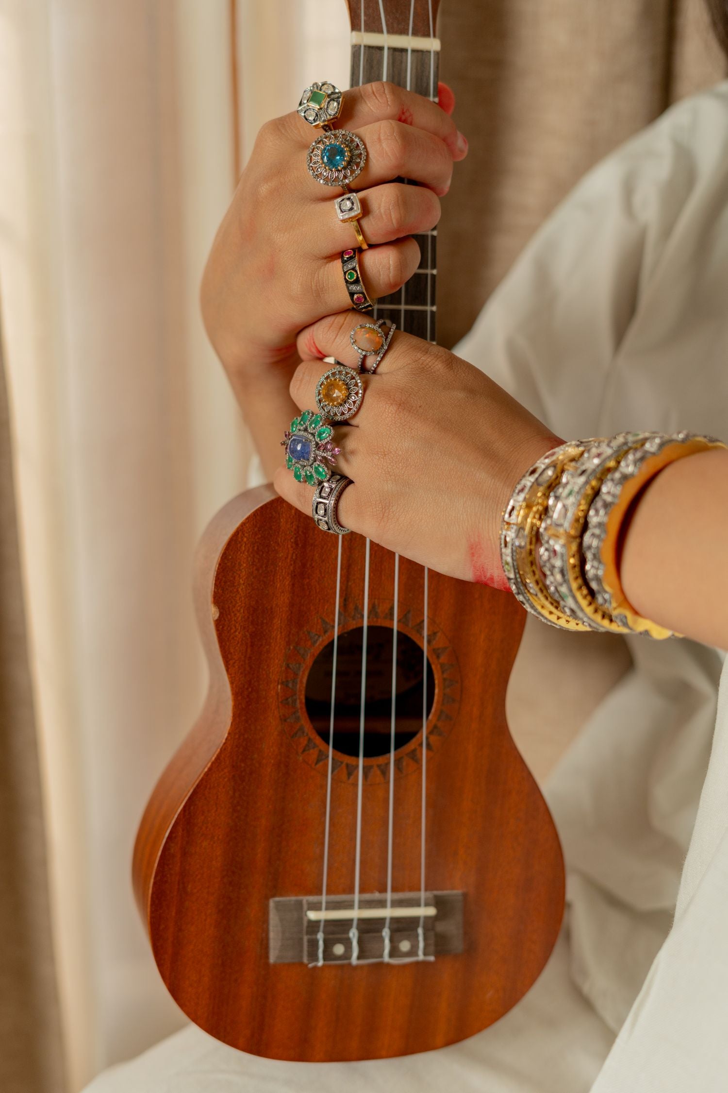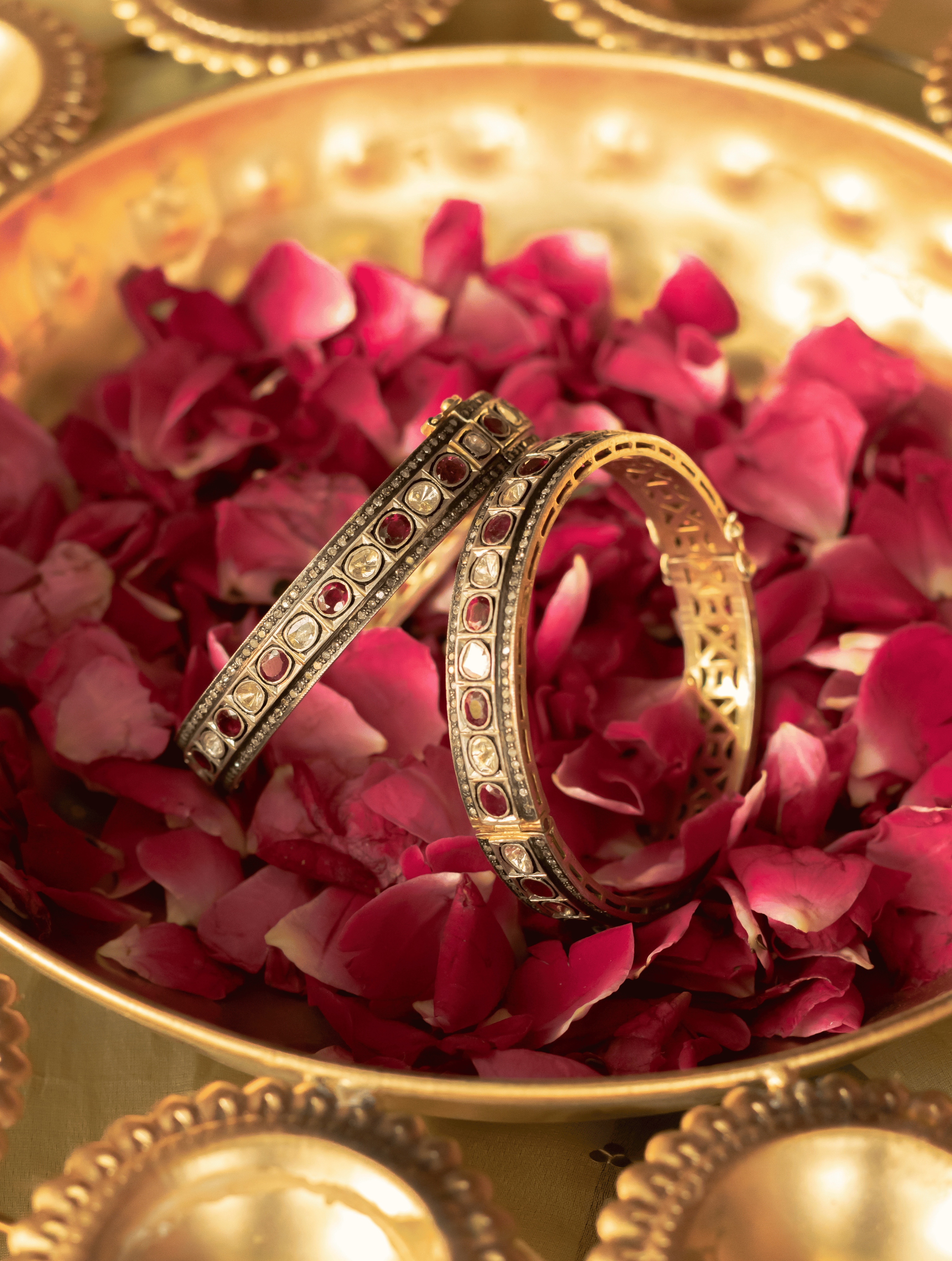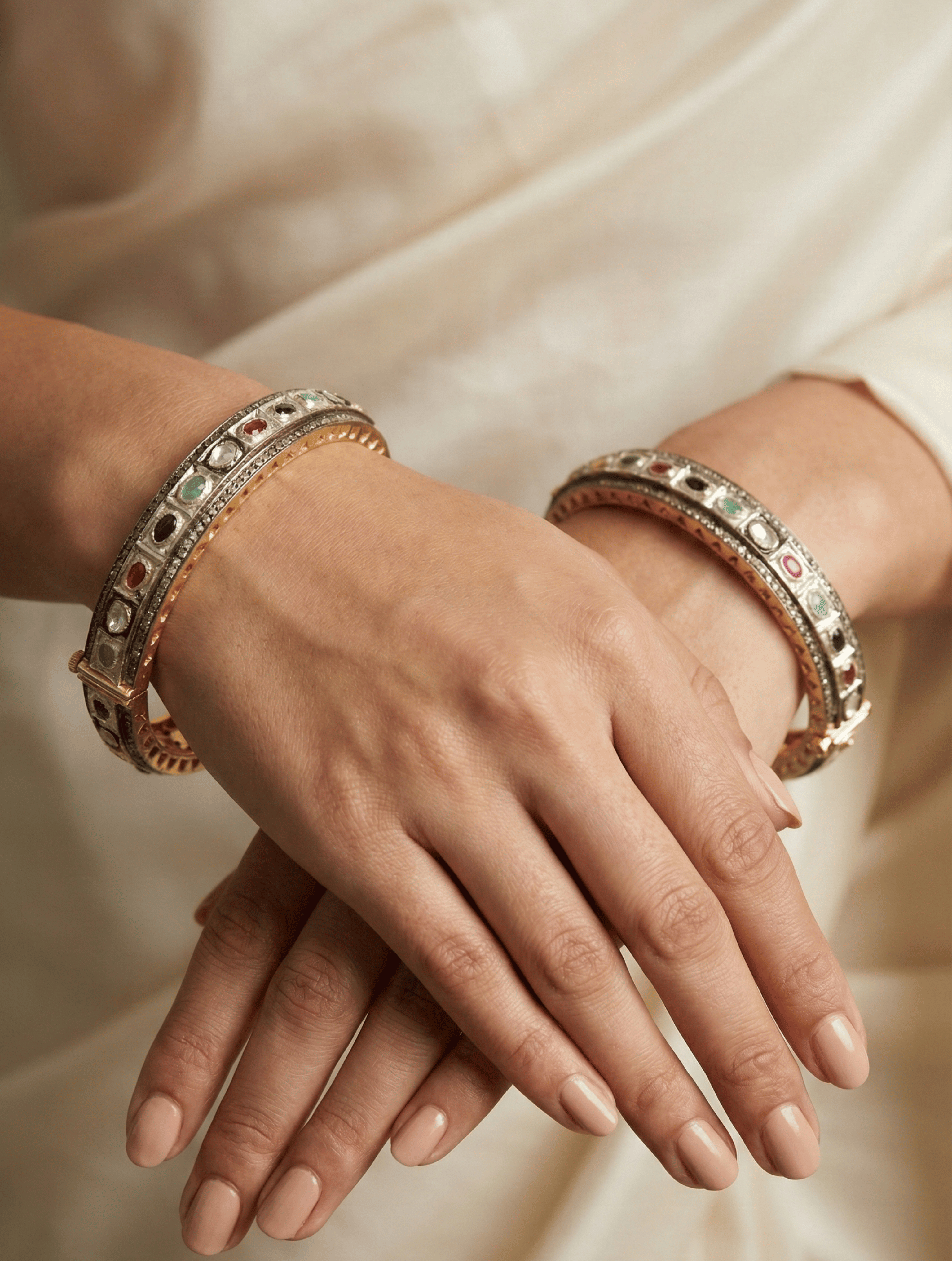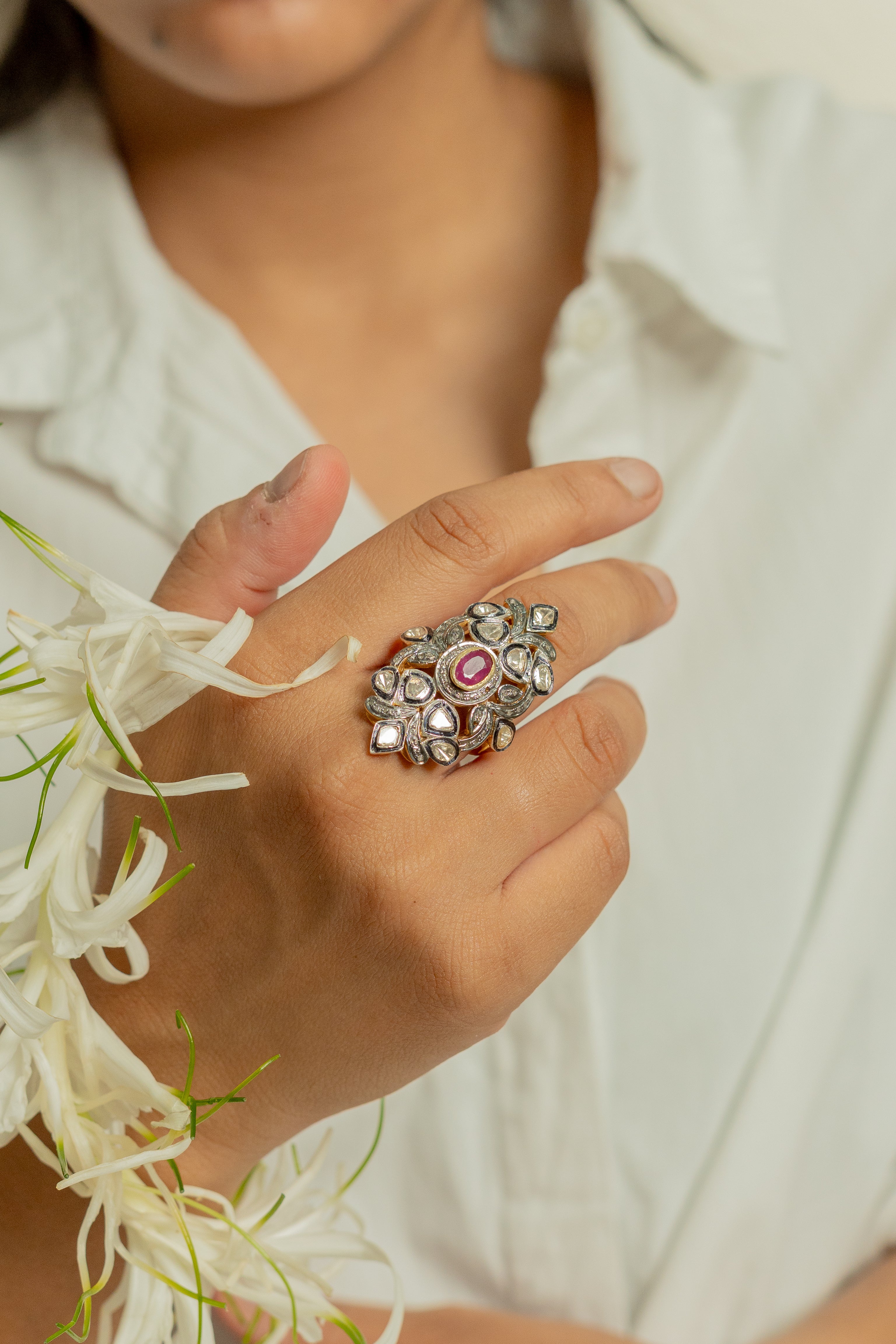 Inspired by centuries-old artistry and steeped in cultural heritage, each piece is handcrafted in 925 sterling silver, adorned with natural polki, diamonds, and handpicked precious gemstones and semi-precious gemstones. Our jewelry is hypoallergenic, nickel-free, and made using methods passed down through generations — an honest tribute to tradition and purity.