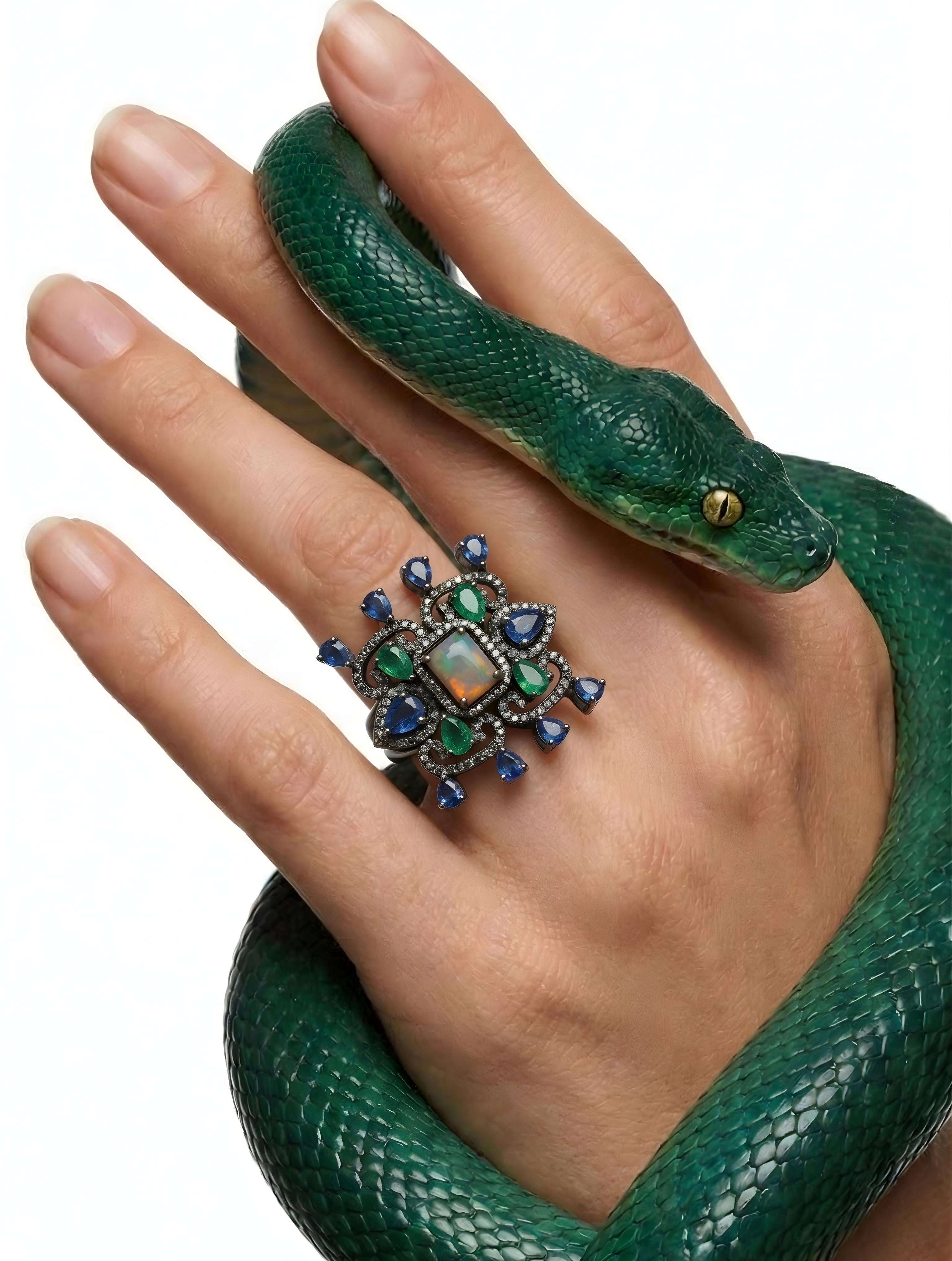 Neela Darbaar & Opaline Bed Fine Artisanal Statement Ring