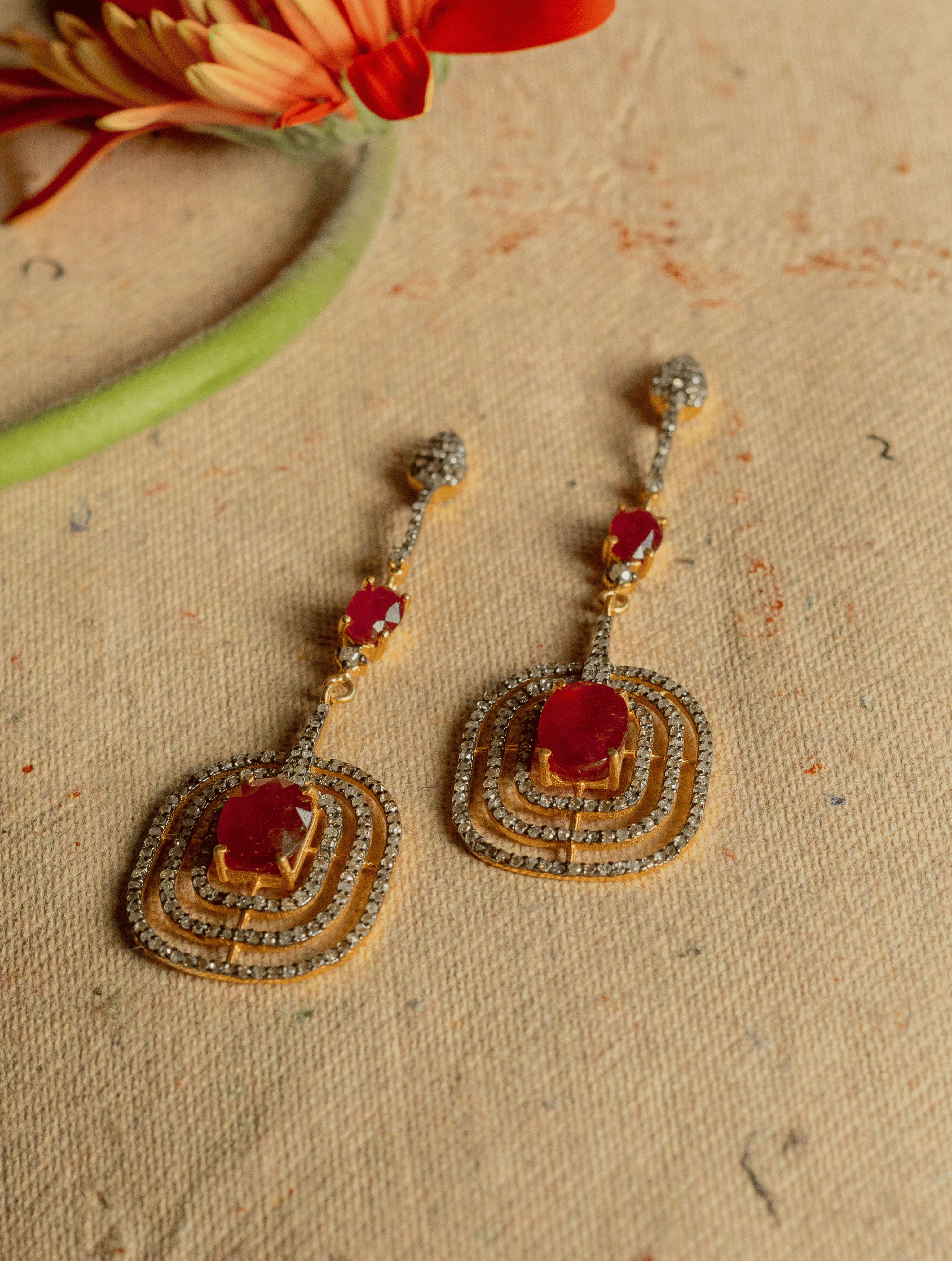 Surkh Ishq Ruby And Diamond Dangler Earrings